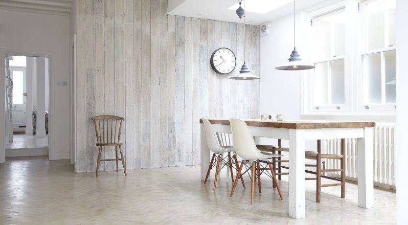 Обшивка стен деревом – стильный и неустаревающий вариант. Он уместен в любой внутренней отделке, выглядит элегантно и гармонично, сочетается с другими отделочными материалами. За натуральной древесиной тяжело ухаживать. Если моющие обои ограничиваются протиранием влажной тряпкой во время генеральной уборки, то деревянные стены полируют каждый день. Поэтому вместо обоев и натурального дерева для отделки стен выбирают обычный или имитирующий редкие и ценные сорта древесины ламинат.