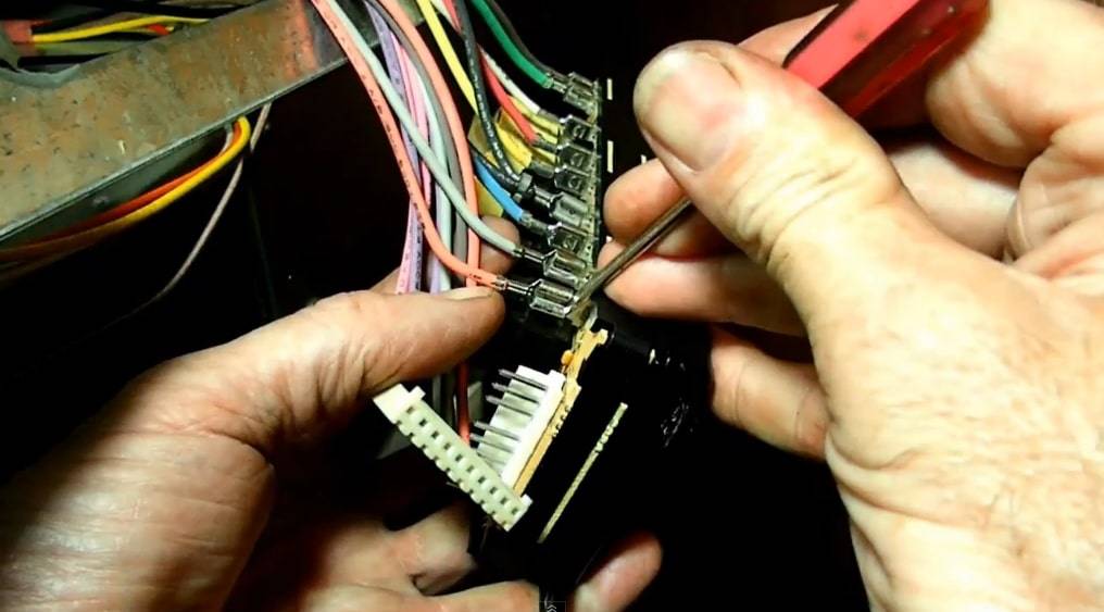 - В монтажной планке есть отверстия – вытащите через них контакты.