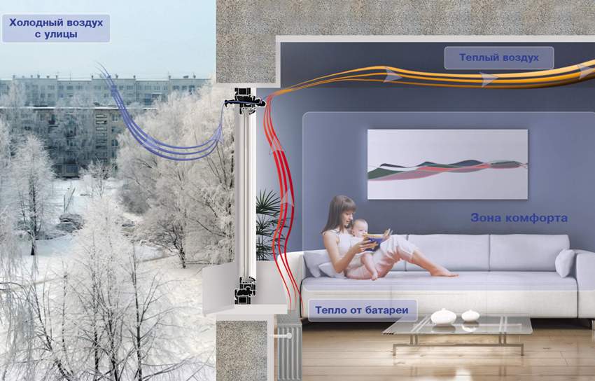 Отверстия в подоконнике позволяют теплому воздуху обогревать стекла
