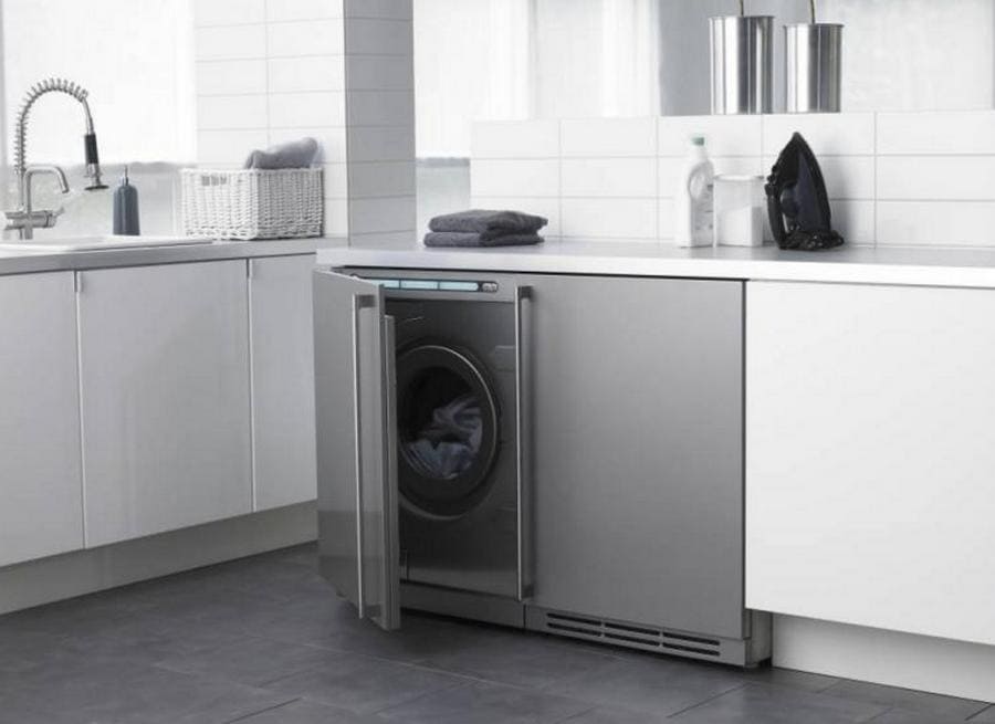 - Узкие «стиралки» встраиваемого типа. Из-за своего узкого корпуса в разы уменьшается опора устройства, поэтому в случае плохого закрепления агрегата он будет постоянно прыгать. Кроме того, узкие машины чаще вибрируют, нежели широкие. Объясняется это тем, что площадь у них меньше, а значит, и устойчивость хуже. Также у узких приборов зауженные барабаны, в которых вещи часто сбиваются в комок.