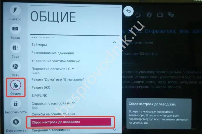 - Сбой в работе техники. Скорее всего произошла системная проблема. В таком ситуации нужно выключить и включить ТВ заново. Разработчики рекомендуют сбросить настройки. Обнулите параметры до заводского состояния.