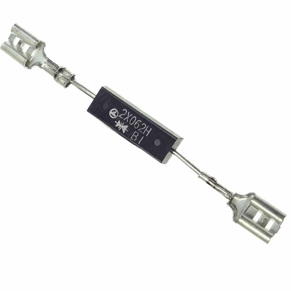 - Перегоревший высоковольтный диод. Если печь пищит, свистит, значит, перегорел диод, теплообменник нагревается. Диод можно снять, проверить, при необходимости — заменить. В рабочем состоянии диод не «прозванивается» мультиметром, при выходном напряжении выше 9 В.