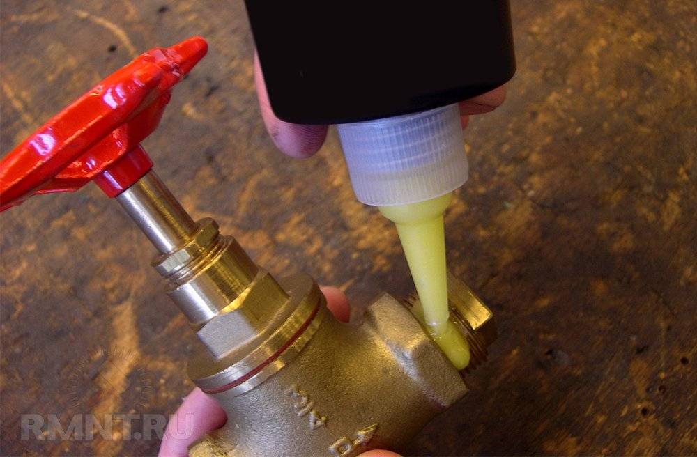 - На очищенную и подготовленную поверхность наносят состав прямо из горлышка тюбика. Иногда в комплекте идет и специальная кисточка. Герметик должен равномерно покрывать всю поверхность резьбы.