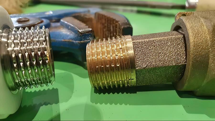 Так выглядит резьба с намотанной ФУМ-лентой.