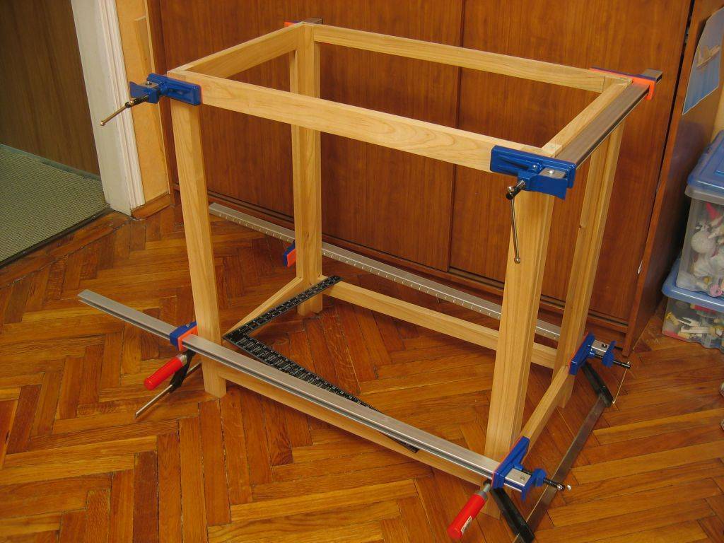 После того как все детали будут готовы, можно приступить к сборке каркаса. Далее, на изготовленном вами каркасе закрепите столешницу, в которую установите раковину с уже собранными смесителем и сифоном.