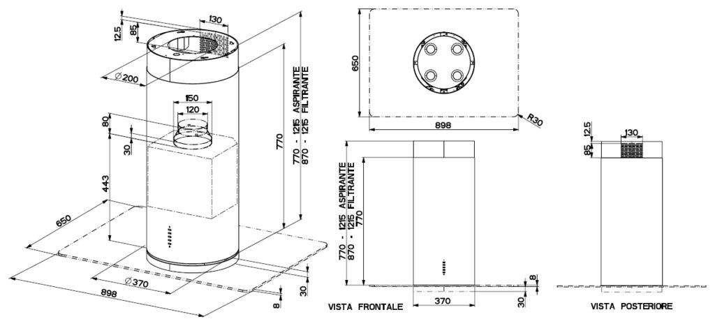 Габариты для выдвижных моделей не являются основным критерием, поскольку они достаточно компактны. Навесные модели редко устанавливаются открыто, чаще их встраивают в кухонную мебель. При открытой установке воздуховоды и электрическая проводка прячутся в короба из гипсокартона.