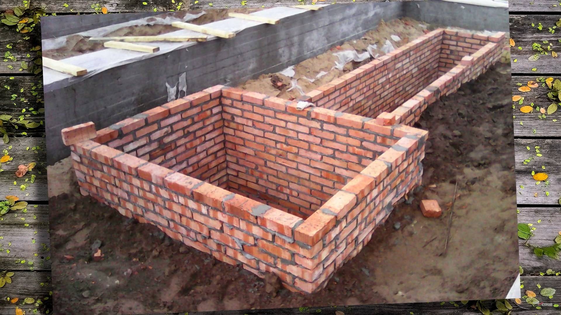 - Выложить кирпичом (ставить на ребро) боковые стены. Связующим раствором служит смесь песка, глины и извести. При этом кладка должна возвышаться над уровнем земли на штык лопаты.