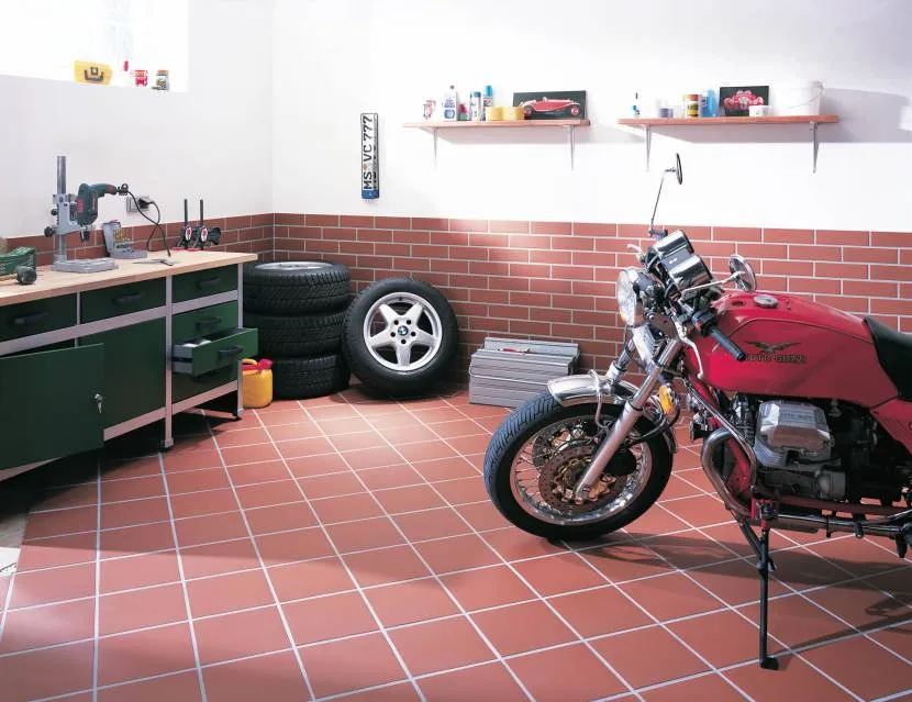 Речь, естественно, идет не о том кафеле, что лежит в ванных и украшает стены на кухне – такая плитка не выдержит нагрузок, характерных для гаража. Подойдет специальная кислотоупорная плитка, которая обычно используется в цехах промышленных предприятий. Материал получают на основе огнеупорной глины, в которую добавляют вещества, обеспечивающие стойкость к негативным факторам окружающей среды.