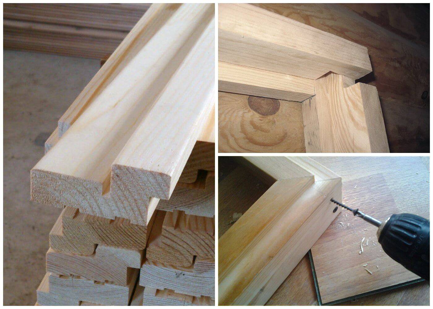 Замеры можно производить как при помощи рулетки, так и приложив брус напрямую к дверному проему, делая пометки карандашом.