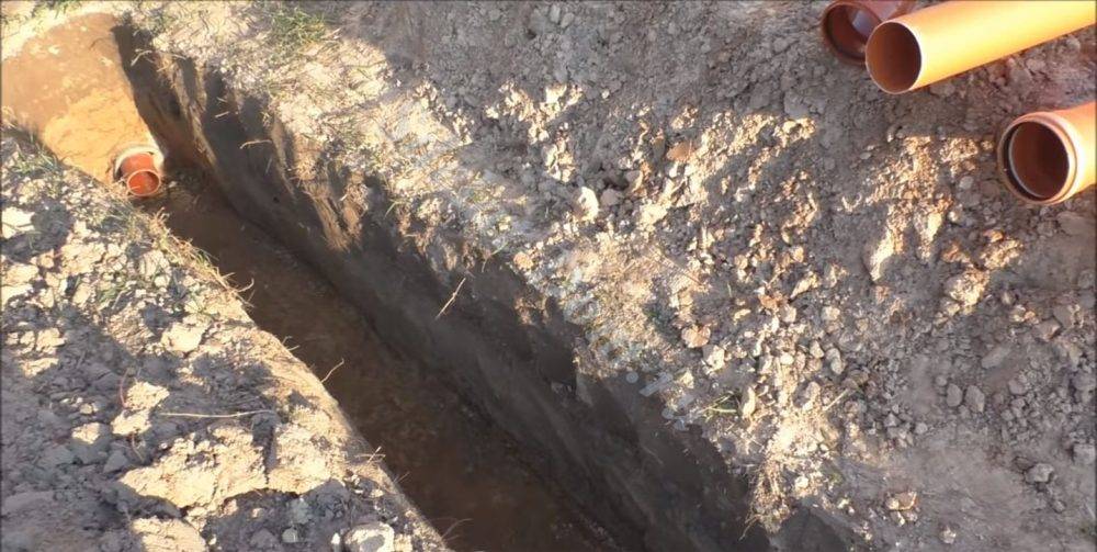 Важно! Канализационная труба должна прокладывается с уклоном не менее 2.5 см на метр длины на глубине 0.8-1.0 м от поверхности. При большом удалении труба войдет в септик слишком глубоко