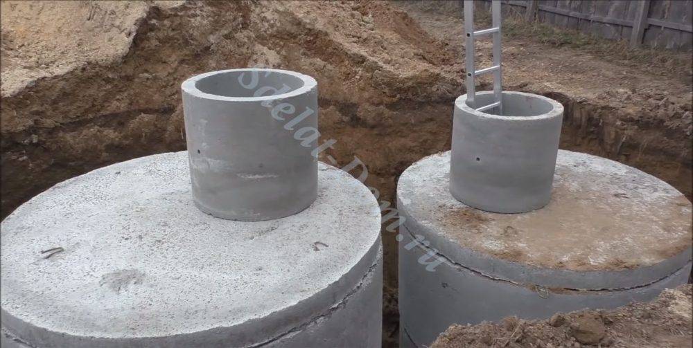Подготавливая список для закупки материалов, в первый пункт записываем бетонные конструкции. Зная количество и высоту резервуаров, легко рассчитать нужное количество колец (высота 90 см). Приобретение нижних колец с уже готовым дном облегчит работу. Необходимые инструменты: