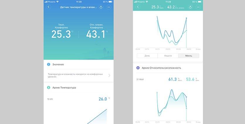 Это гораздо удобнее, чем использовать данные с самих климатических приборов. Компактный датчик температуры и влажности можно разместить дальше от кондиционера и увлажнителя, получая более точные данные.