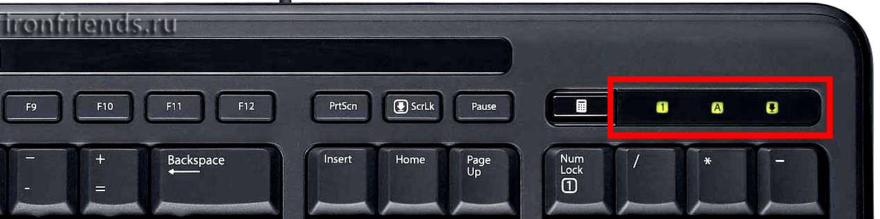 Кроме этого любая клавиатура должна иметь индикаторы: CapsLock, NumLock и ScrollLock. В противном случае вам трудно будет понять почему вы не можете войти куда-то под своим паролем, не работает набор цифр или клавиатура ведет себя неадекватно.