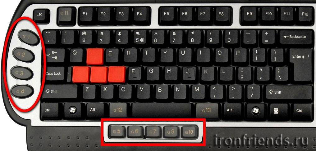 Программируемые клавиши – в основном присутствуют на игровых клавиатурах и требуют установки специальной программы для этой клавиатуры. На эти кнопки можно назначить различные сочетания клавиш, что бы упростить их использование в играх.