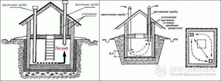 Вентиляция в погребе с двумя трубами