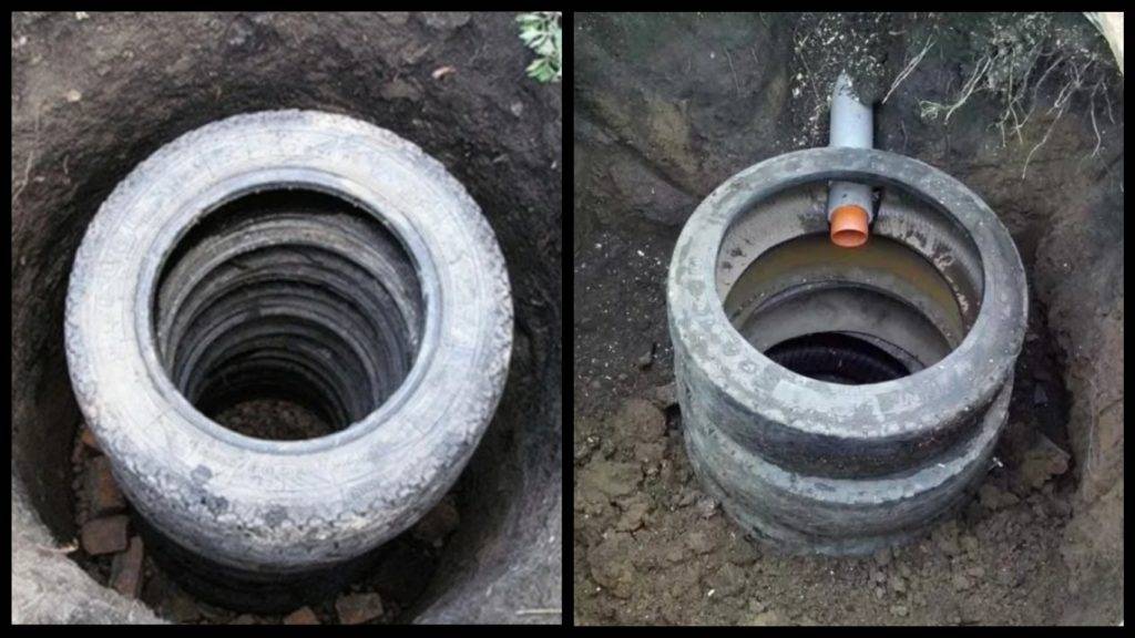 Из старых автомобильных шин можно устроить отличную выгребную яму. Объем вмещаемых отходов зависит только от глубины ямы – чем больше шин в ней разместят, тем реже ее придется чистить.