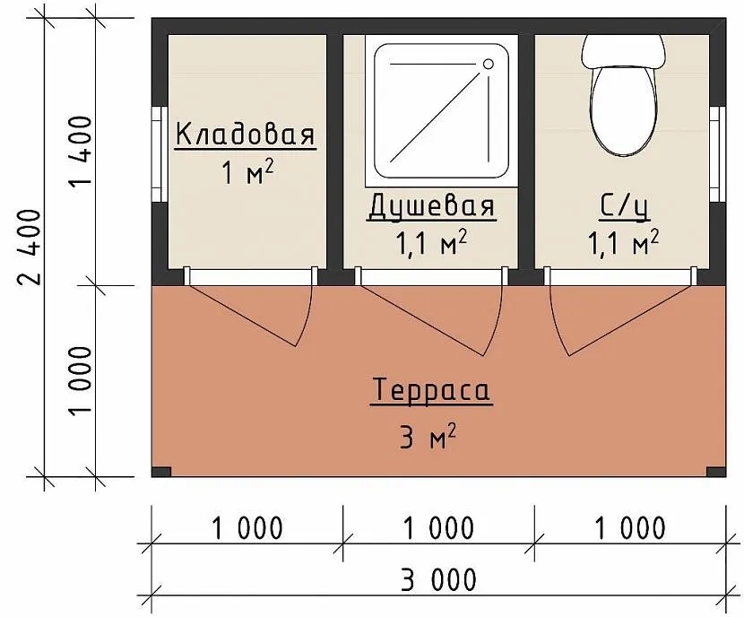 - Туалет и душ для дачи поставляются в разобранном виде, что облегчает доставку на место строительства.