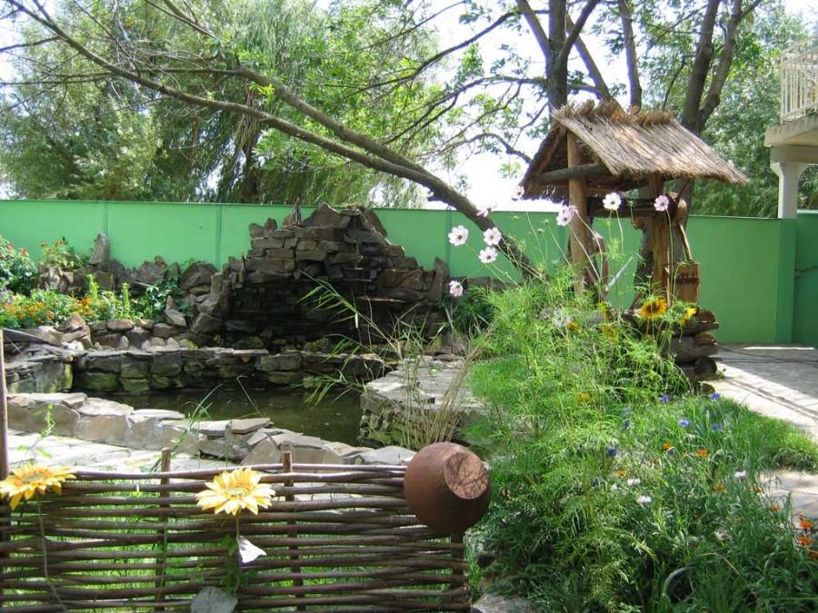 Геопластика решает утилитарные задачи: скрыть хозяйственные объекты, безотходно использовать землю из котлована для формирования искусственных насыпей и гротов.
