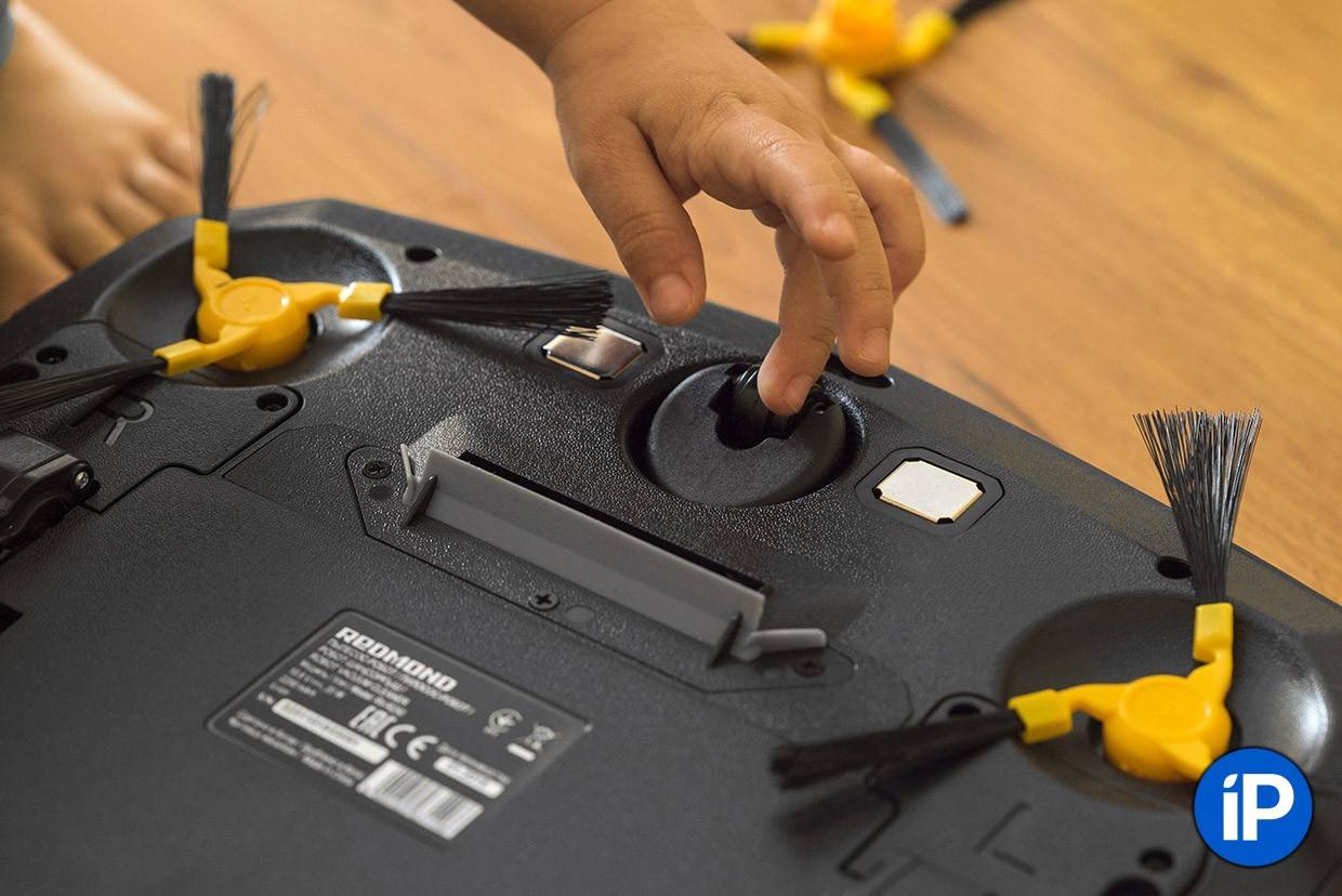Чистить REDMOND RV-R250 даже проще, чем самый обычный пылесос. Вихревые щетки снимаются очень легко и без инструментов, воздушный фильтр вынимается из контейнера в два движения.
