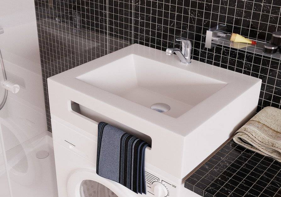 Обзор раковин над стиральной машиной: нюансы специальной мебели и столешниц