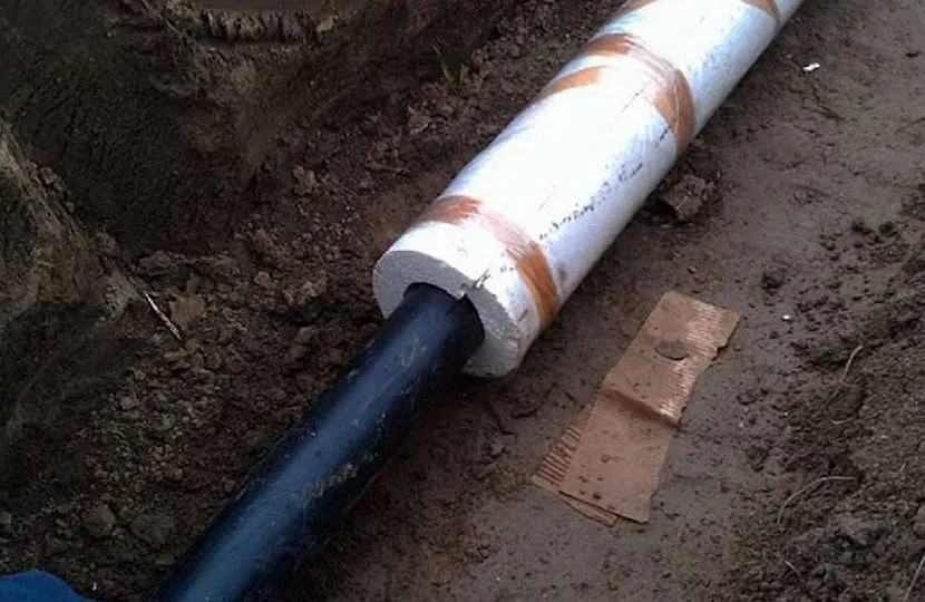 Из качественных и дорогих материалов профессионалы выделяют пеноизол. Вещество в жидкой форме заливают в траншею с трубами. После полимеризации твердый состав защищает конструкцию от морозов. Долговечный, прочный утеплитель устанавливают при помощи специального оборудования, которое не всегда доступно обычным домовладельцам.