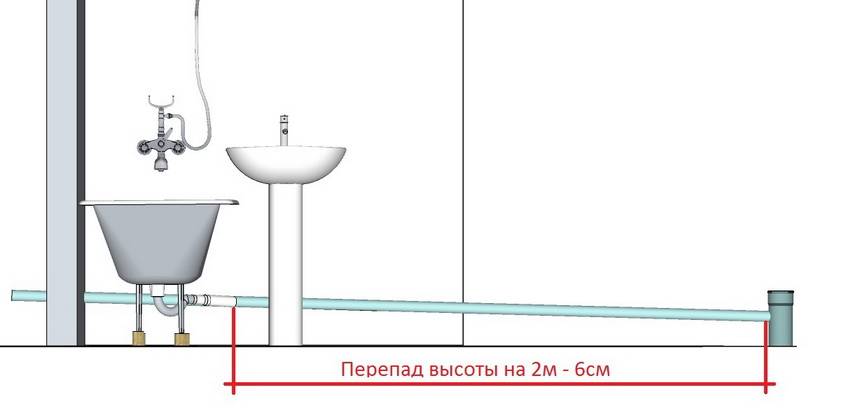 Для внутренней части коммуникации придерживаются 1,5-2 см уклона на каждый погонный метр.