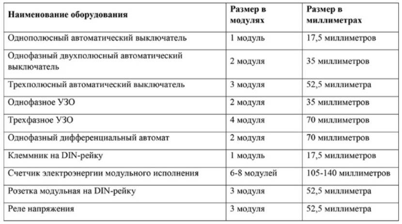 Приведем пример, на котором вы увидите, сколько мест в щитке займет тот или иной модуль.