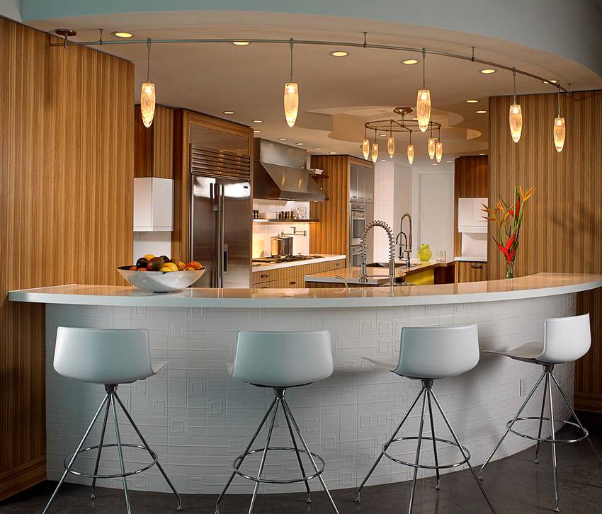 Если вы планируете установить светильники непосредственно над поверхностью столешницы, то их высота должна составлять примерно 60 сантиметров. Такое замещение искусственного освещения очень удобно, так как создается максимальный комфорт для приготовления блюд.