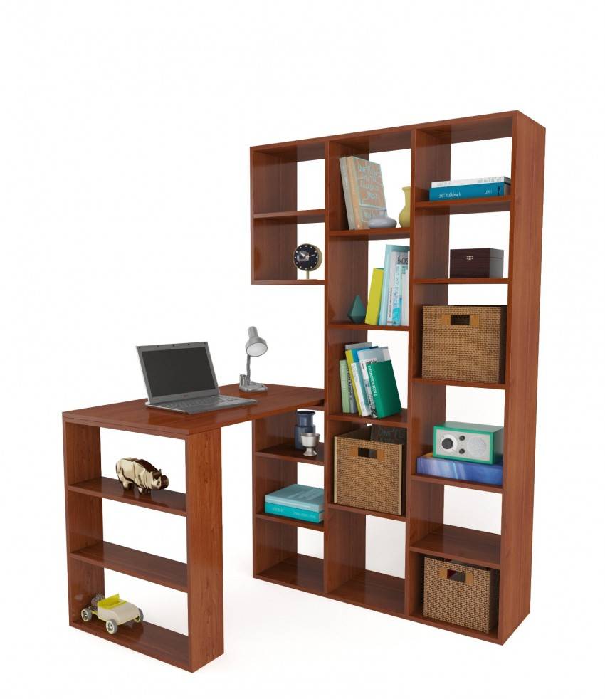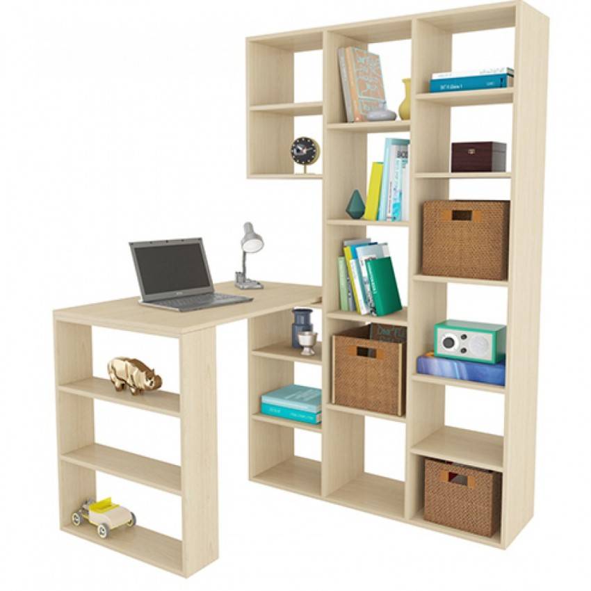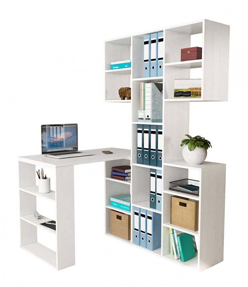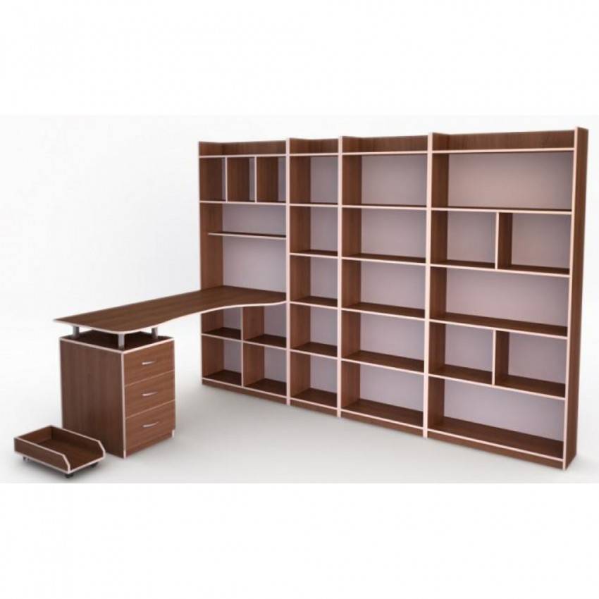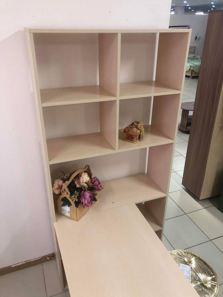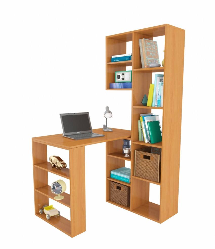 - СП-55 – угловой вариант, совмещенный со стеллажом, может похвастаться удачной компоновкой. Системник здесь размещается в открытой нише над тумбой, для принтера есть своя полочка в шкафу, над нишей для монитора можно разместить колонки. Стол диагонально-перпендикулярный, так что на столешнице вполне достаточно места и для сканера. Стоимость модели – 10700 р.