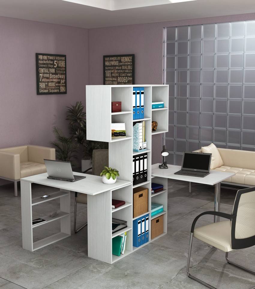 - Угловая модель Бостон относится к той же категории – офисный стол для работы с документами. Столешница размещается перпендикулярно плоскости объемного шкафа с полками и ящиками для документов. Стоимость 9900 р.