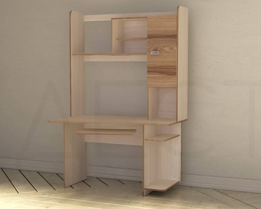 В основу любого изделия входит столешница, боковины и центральная перекладина. Можно сделать дополнительные полки и выдвижные ящики. Предмет мебели собирают с помощью креплений и шурупов.
