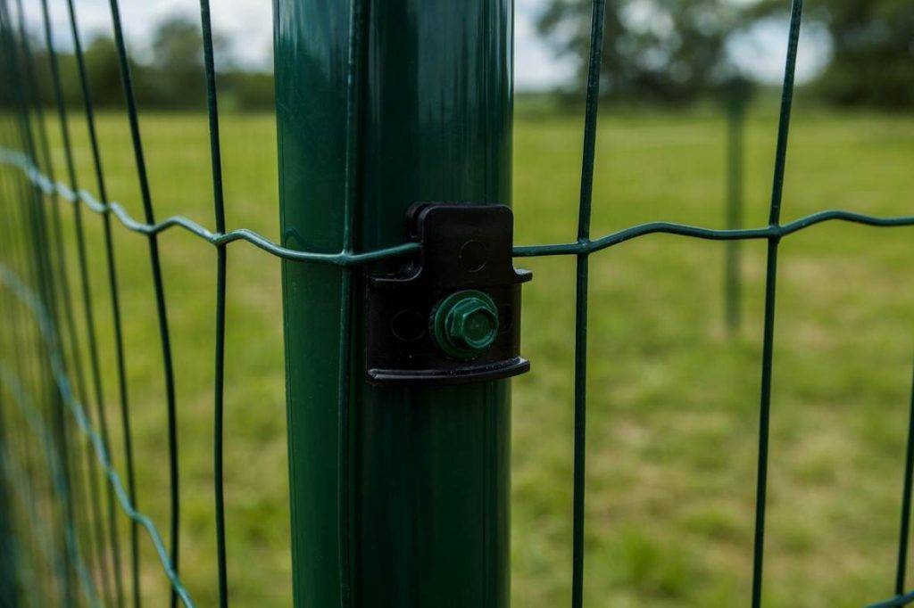 При правильном расположении столбов установка самих модулей не представляет никаких трудностей. Сетка сварная 3Д легко крепится к опорам с помощью специальных элементов (болтов с гайками, скоб и хомутов), входящих в комплект конструкции.