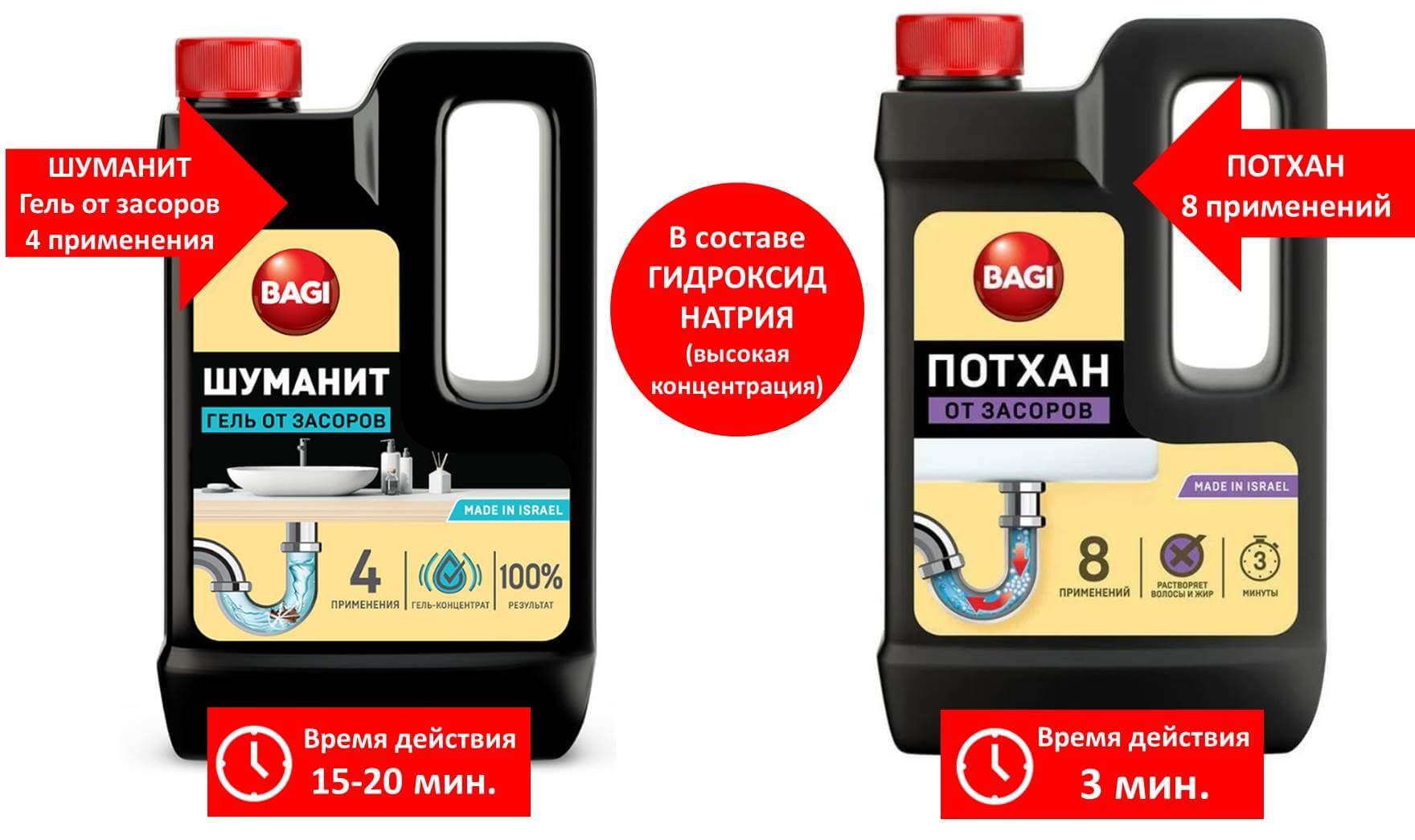 - Шуманит гель от засоров (450 мл) – 4 применения.