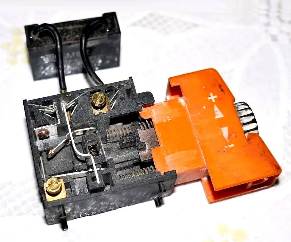 Другая частая причина поломки — выход из строя кнопки или переключателя реверса. Попробуйте прозвонить контакты, к которым подключены провода, на предмет наличия коммутации. Неисправную кнопку можно заменить, можно попытаться отремонтировать. Открутив пару небольших болтов, которыми скреплён корпус, вы получите доступ к внутренностям. Оцените состояние ламелей (могут стереться или окислиться), проверьте исправность отбрасывающего механизма, чистоту печатной платы и наличие подгораний на основных контактах.