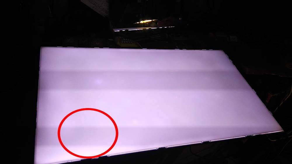 Для этого подсветку подключают к драйверу и кладут сверху пластину светорассеивающего фильтра. Если она равномерно освещена, ничего делать не нужно. А вот в случае обнаружения дефектов линзу в месте их находки можно немного сдвинуть в правильную позицию.