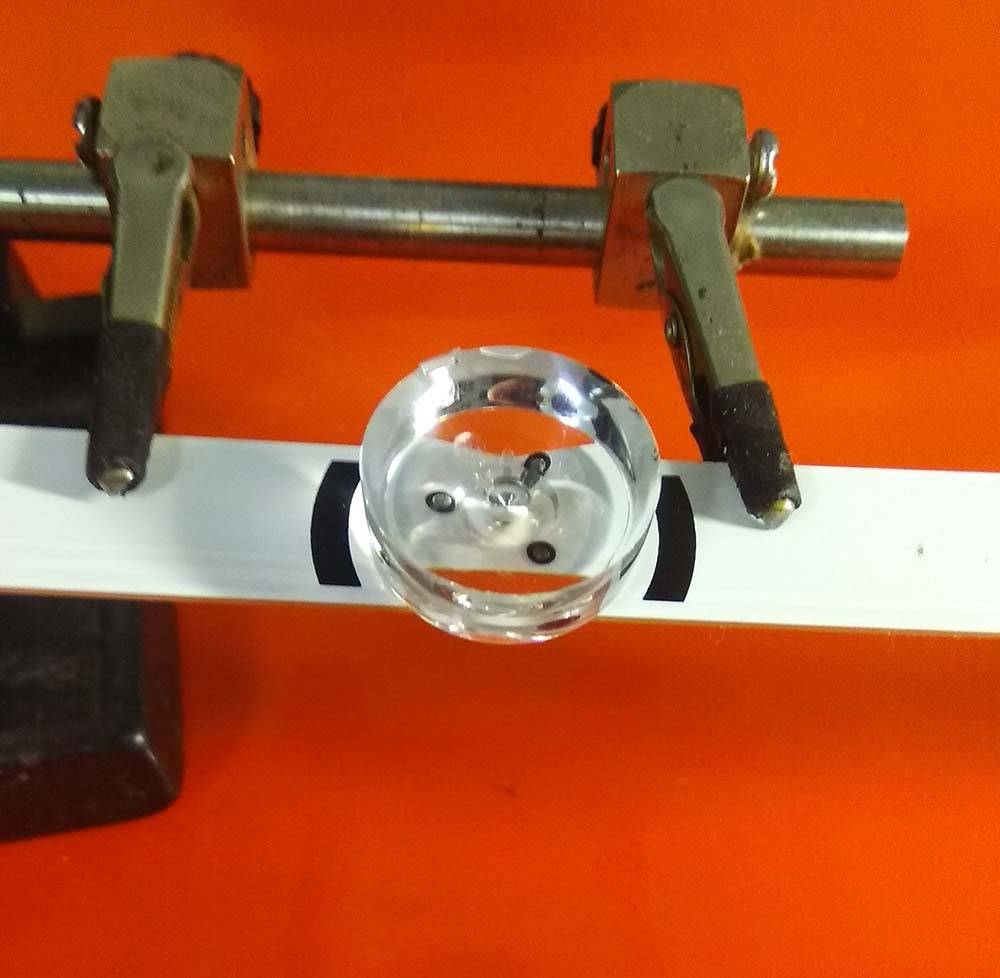После этого, закрепляем планку с помощью “третей руки”, и готовимся снимать линзу.