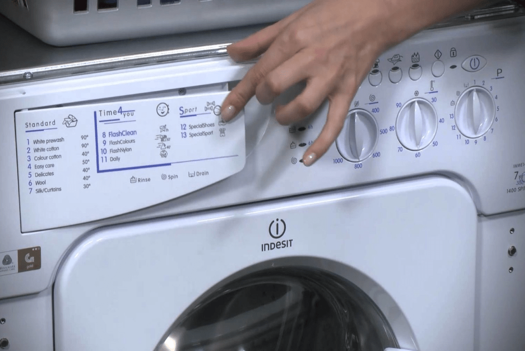 механический выключатель питания — имеется, отдельная кнопка рядом с переключателем программ . Однако выключатель размыкает обе линии 220В только на ранних модификациях стиральной машины Индезит WS105TX, позднее использовался однополюсный выключатель, поэтому в целях безопасности стоит выключать ее из розетки между стирками.