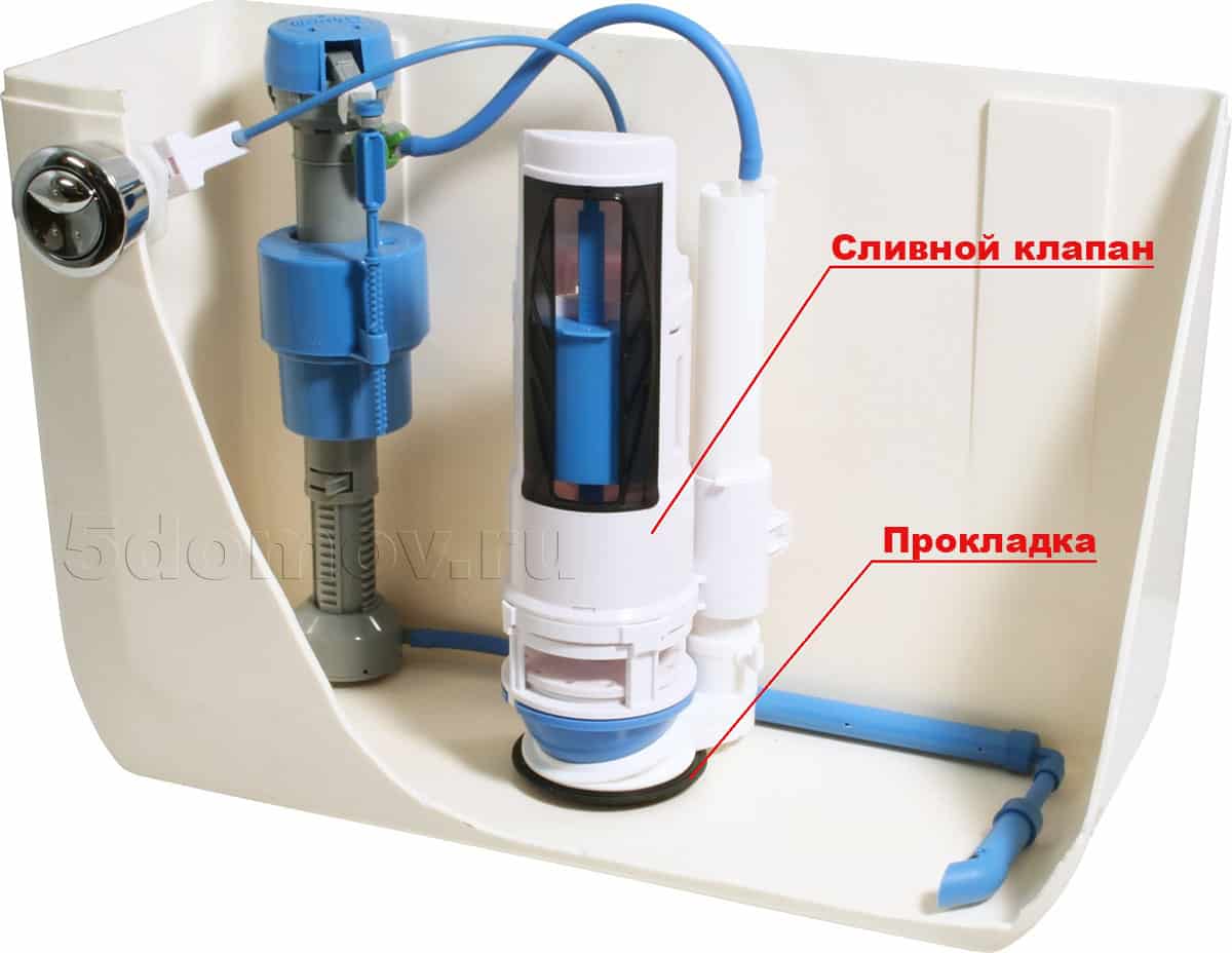 1. Недожата прокладка, которая находится на выходном отверстии сливного клапана. Необходимо, чтобы прокладка была надежно дожата к детали унитаза. Ведь протекание может быть не только из-за потери эластичности или деформирования.