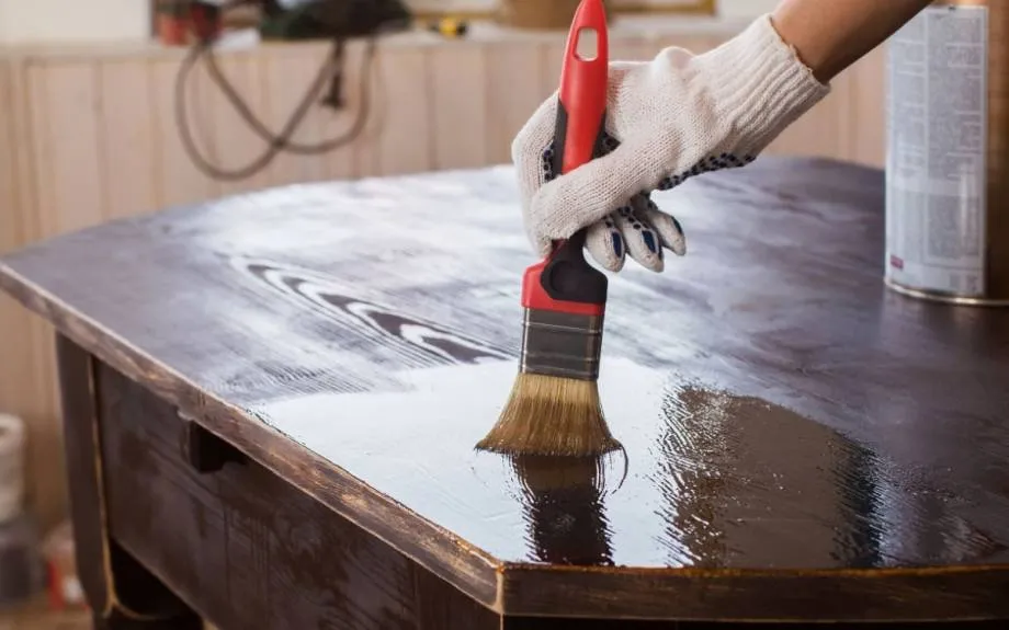 - Наносят слой финишной отделки. Она может быть прозрачной (если вы хотите подчеркнуть натуральный вид деревянной поверхности) или лессирующей (цветной лак или воск, масло, морилка) для того, чтобы усилить оттенок основы.