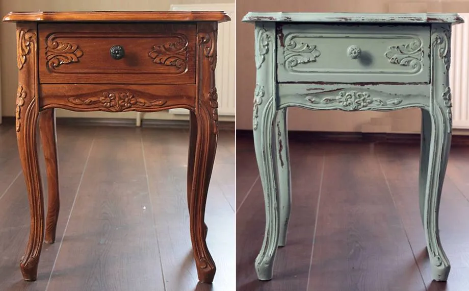 Перед тем, как приступить к переделке, необходимо отремонтировать мебель и почистить её от грязи. Если требуется – удалите старое покрытие с помощью шпателя, смывки или нагревания. Дефектные места следует зашпаклевать. Затем поверхность нужно отшлифовать мелкозернистой наждачной бумагой и покрыть грунтовкой.