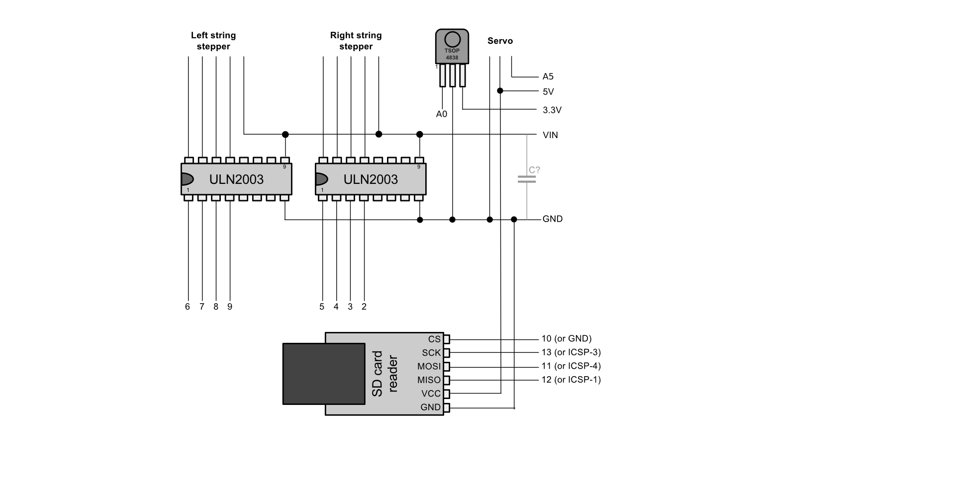 Построение плоттера довольно прямолинейно и очень похоже на большинство других проектов Arduino. У вас есть Arduino Uno, некоторые компоненты, которые вы хотите использовать, и кучу кабелей для подключения всего этого.