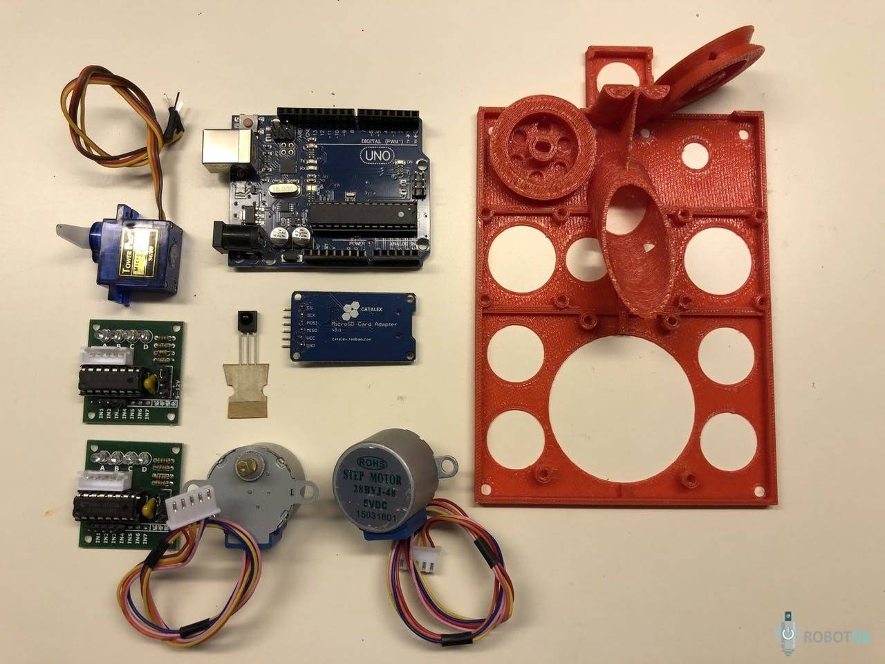 - Arduino (совместимый с USB) или микроконтроллер (например, ATMEG16, ULN2003A), служащий для преобразования поступающих с компьютера команд в сигналы, вызывающие движение приводов;