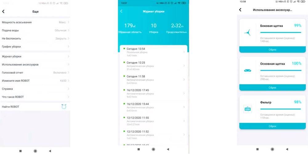 Помимо этого, можно настроить график уборки по времени и дням недели, посмотреть в журнале событий все последние уборки, затраченное время, квадратуру.