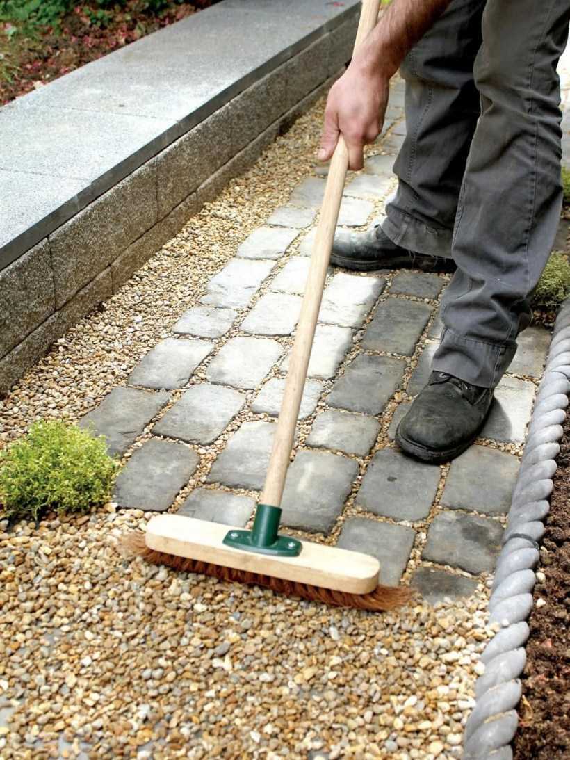 После окончания кладки, все имеющиеся швы нужно заполнить сухой чистым песком. Для этого материал высыпается на поверхность и разметается по ней мягкой щеткой, заполняя тем самым все пустоты.