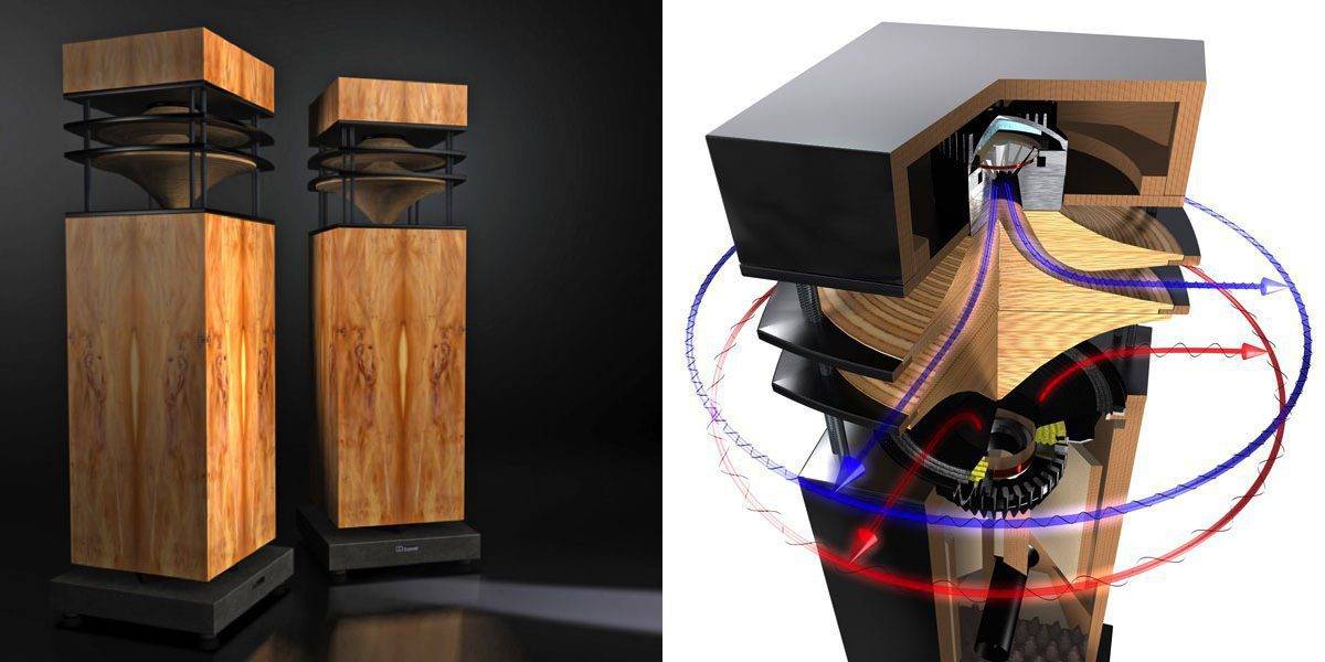 Именно такой аналогией проще всего описать характер излучения контрапертурных акустических систем, впервые разработанных в Советском Союзе в 80-х годах прошлого века. Принцип работы нетривиален: пара одинаковых динамиков смонтирована так, что их диффузоры расположены друг напротив друга в горизонтальной плоскости и двигаются симметрично, то сжимая, то разжимая воздушную прослойку. В результате создаются кольцевые воздушные волны, равномерно расходящиеся во все стороны. Причем характеристики этих волн в процессе их распространения искажаются минимально, а их энергия затухает медленно — пропорционально расстоянию, а не его квадрату, как в случае обычных АС.