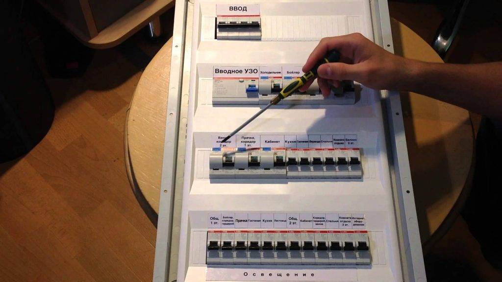 - Заведите в распределительный щиток вводные провода и те, которые идут от каждой комнаты/мощных электроприборов.