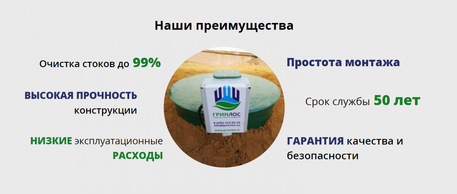 - любых грунтов — возможность выбрать высоту корпуса позволяет устанавливать ЛОС в песчаные и глинистые грунты с высоким уровнем грунтовых вод.