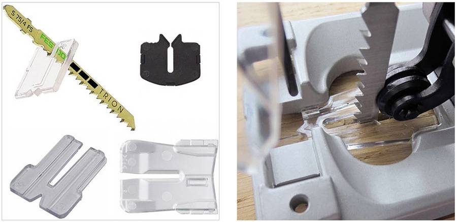 Как правило, такие дополнительные аксессуары не входят в комплект лобзика, но их без труда можно найти в специализированных магазинах. К списку наиболее востребованных вспомогательных приспособлений для электролобзиков можно отнести: