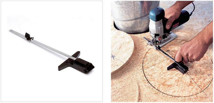 Параллельный упор (предназначен для выполнения прямолинейных пропилов параллельно краю заготовки)Упор-циркуль (необходим для повышения точности реза по окружности)