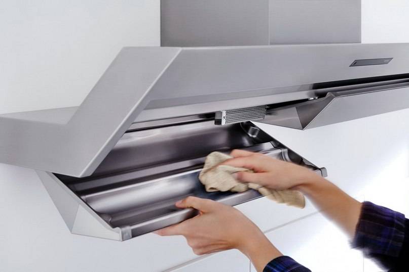 За вытяжкой с отводом в вентиляцию необходимо регулярно ухаживать. Снаружи пыль протирается раз в неделю. Прежде всего для безопасности надо отключить оборудование от электропитания, затем протереть корпус сухой салфеткой.